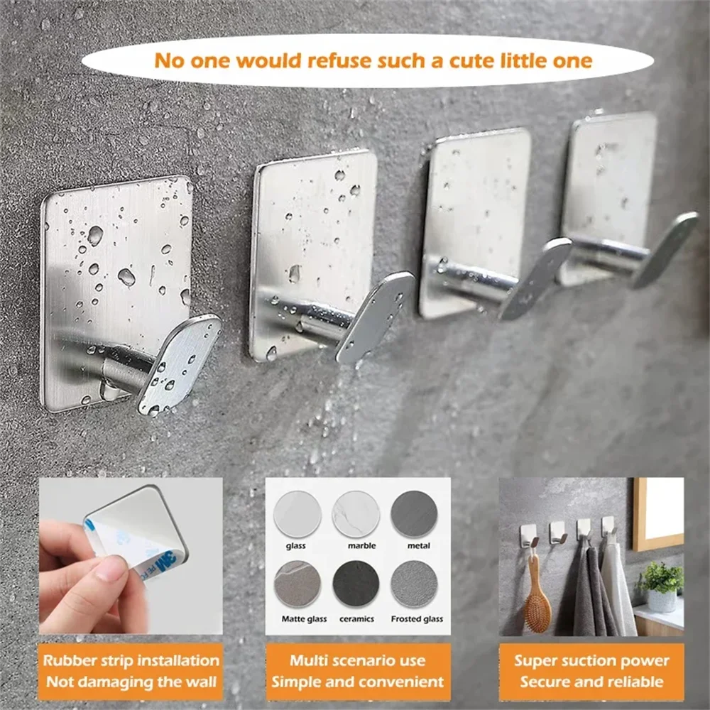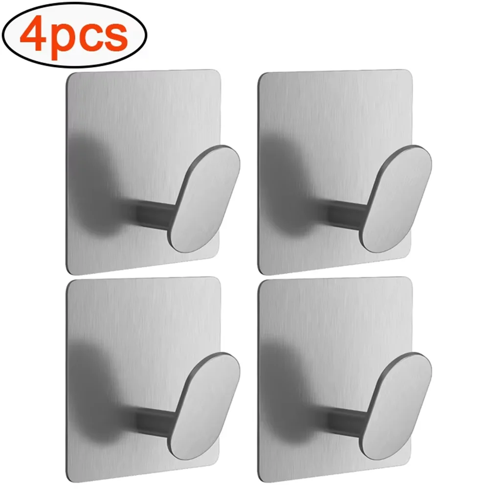 4/1Pcs Stainless Steel Bathroom Robe Hooks Adhesive Wall Hook Towel Holder Bathroom Kitchen Hardware Multi-Purpose Hanger Hook